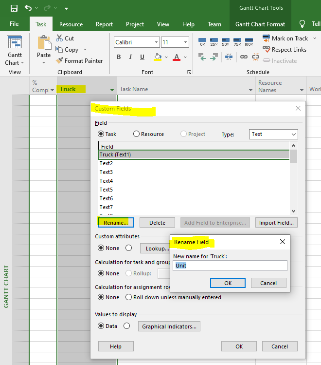 Let’s rename “Text1” in Custom Fields to “Units”